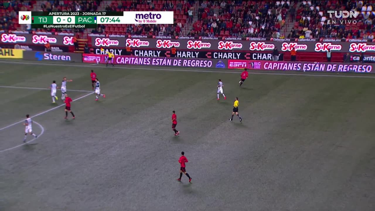Tiro atajado raso al centro del arco. Carlos González (Club Tijuana) zurdazo desde fuera del área.