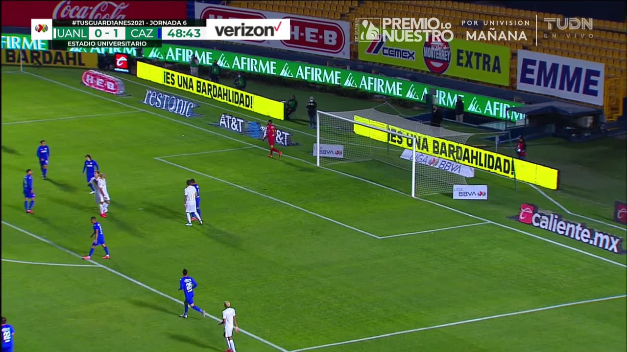 Tiro atajado al ángulo superior derecho. Carlos González (Tigres) disparo de cabeza desde el centro del área. Asistencia de Rafael Carioca con un centro al área.