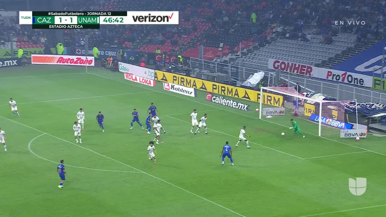 Tiro atajado raso al centro del arco. Carlos Rodríguez (Cruz Azul) Disparo con la derecha desde fuera del área. Asistencia de Ignacio Rivero.
