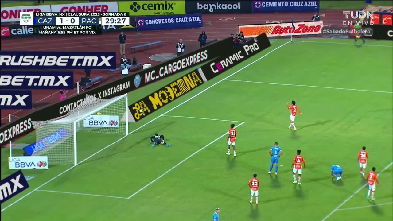Tiro atajado. Carlos Rodríguez (Cruz Azul) Disparo con la derecha desde fuera del área.