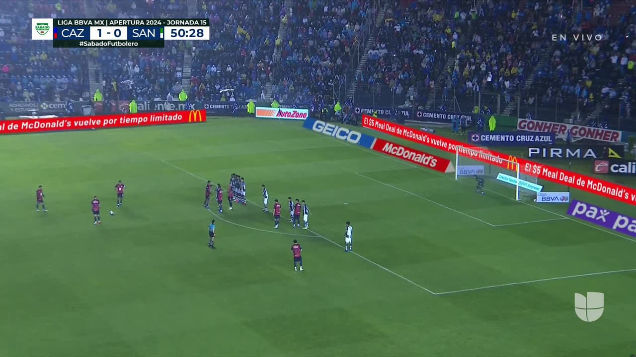 Tiro atajado por abajo a la izquierda. Carlos Rotondi (Cruz Azul) zurdazo desde fuera del área.