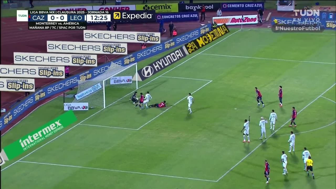 Tiro atajado al ángulo superior derecho. Carlos Rotondi (Cruz Azul) zurdazo desde fuera del área.