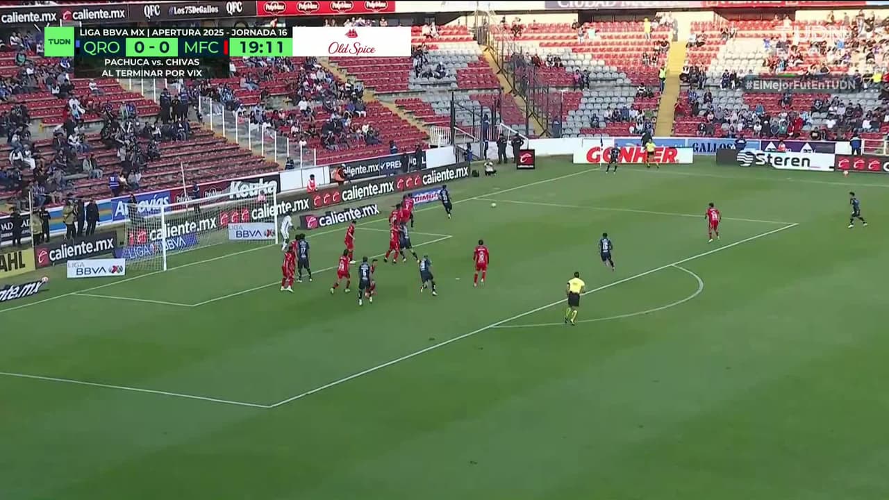 Tiro atajado raso al centro del arco. Carlos Villanueva (Querétaro) Disparo con la derecha desde el centro del área.