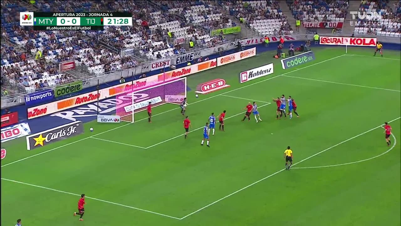 Tiro atajado al ángulo superior derecho. César Bustos (Monterrey) disparo de cabeza desde el centro del área. Asistencia de Arturo González con un centro al área.