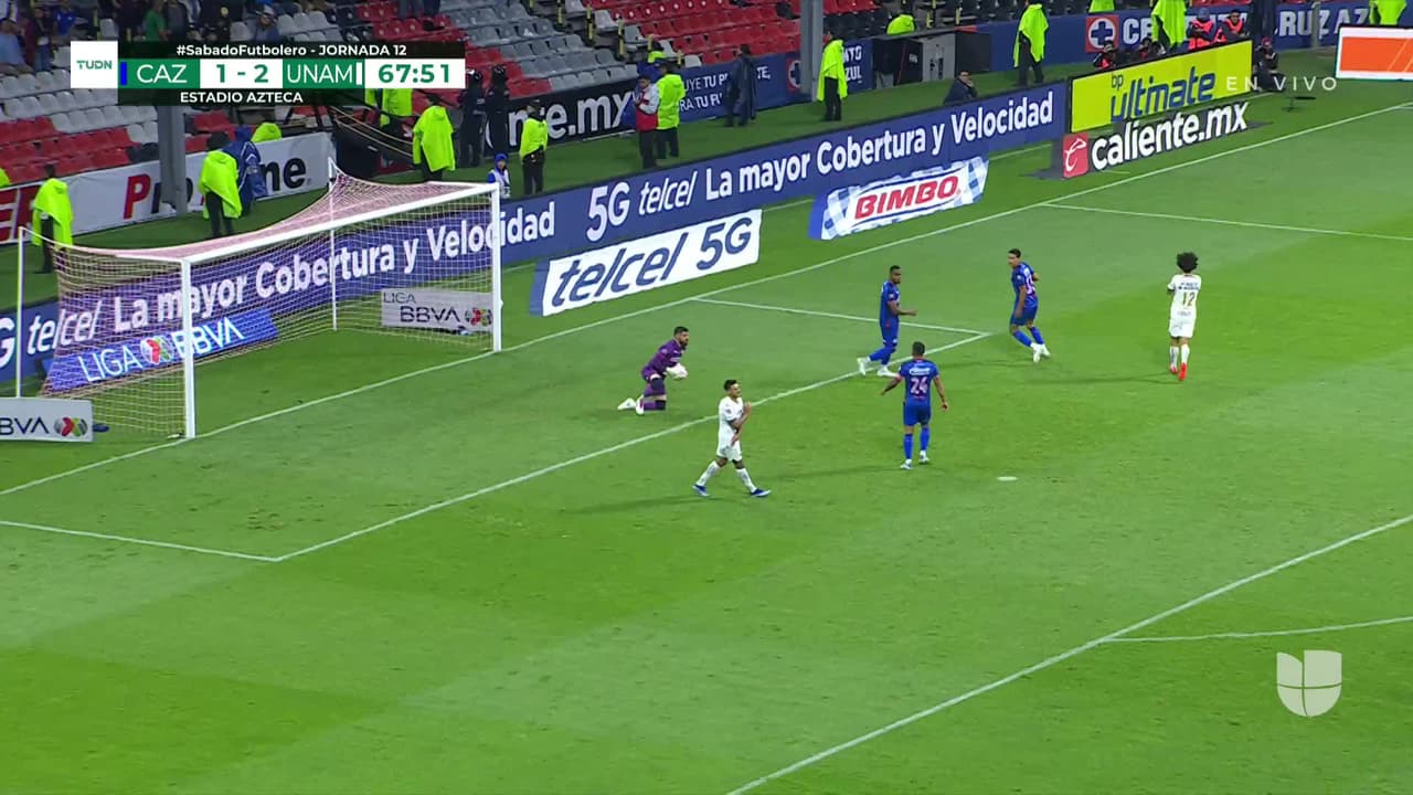 Tiro atajado. César Huerta (Pumas UNAM) Disparo con la derecha desde el centro del área.