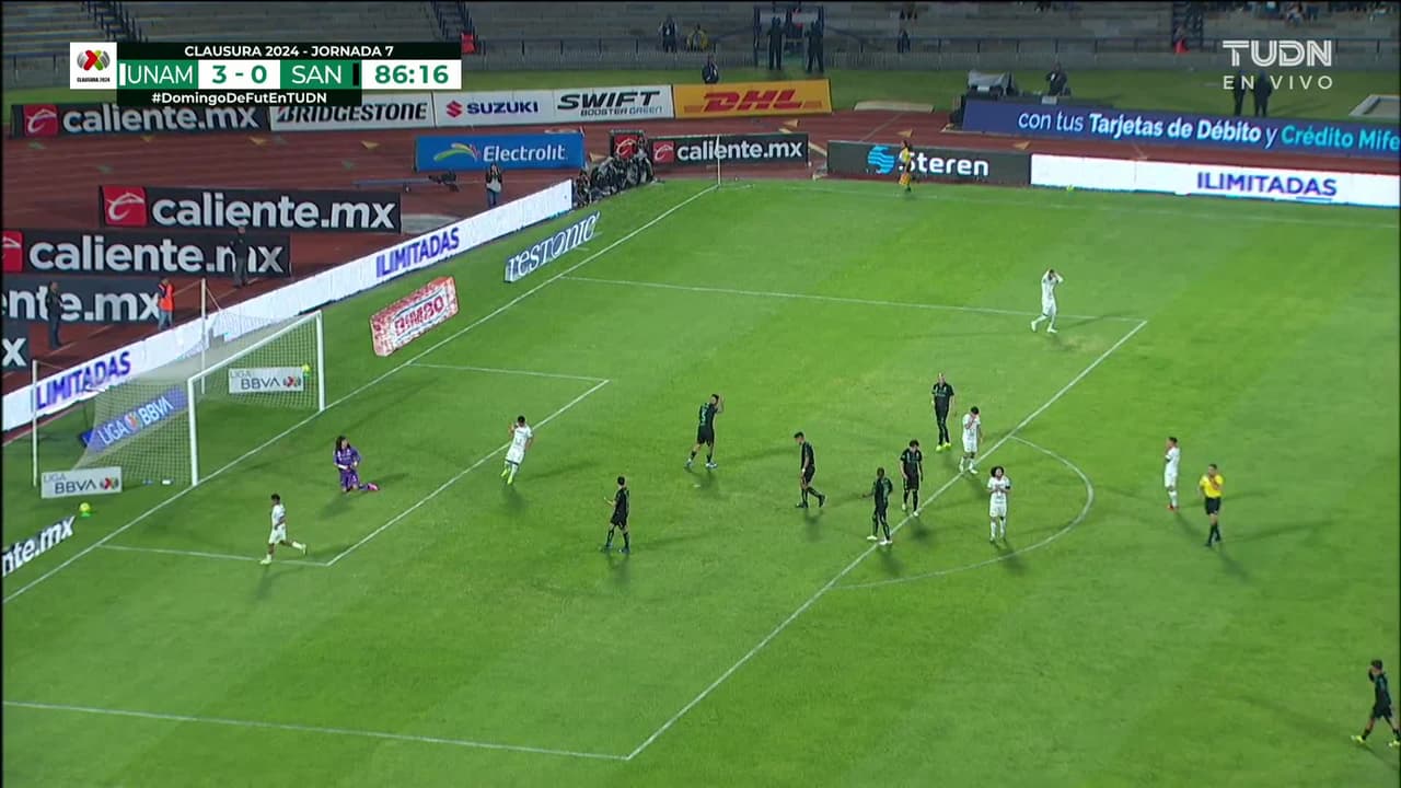 Tiro atajado por abajo a la izquierda. César Huerta (Pumas UNAM) Disparo con la derecha desde fuera del área. Asistencia de Leo Suárez.