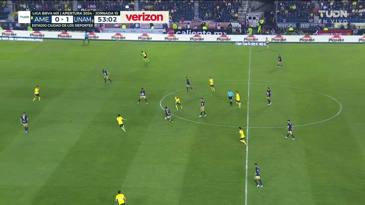 Tiro atajado. César Huerta (Pumas UNAM) zurdazo desde el centro del área.