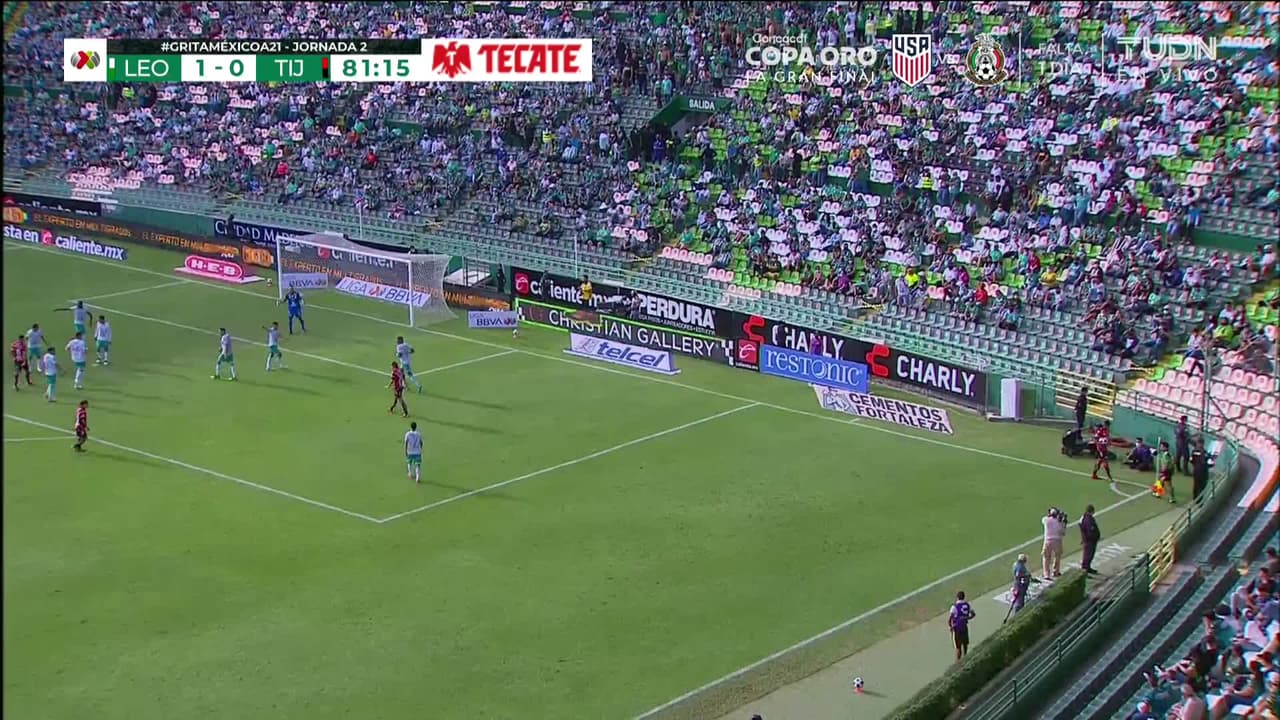 Tiro atajado por abajo a la izquierda. Christian Ortíz (Club Tijuana) disparo de cabeza desde el centro del área. Asistencia de Misael Domínguez con un centro al área.