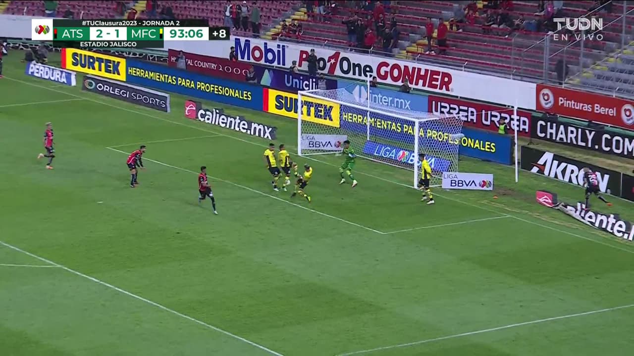 Tiro atajado raso al centro del arco. Christopher Trejo (Atlas) Disparo con la derecha desde fuera del área. Asistencia de Édgar Zaldívar.