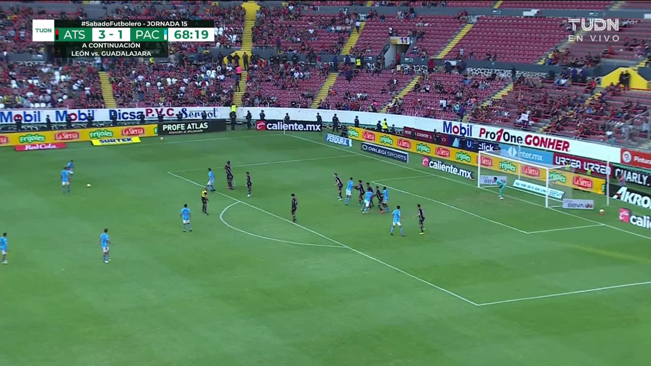 Tiro atajado por abajo a la izquierda. Cristian Arango (Pachuca) Disparo con la derecha desde fuera del área.