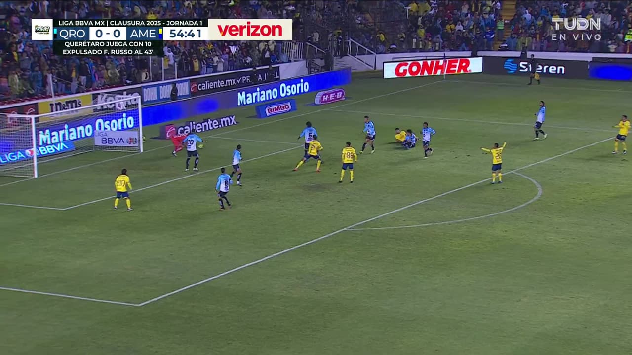 Tiro atajado junto al lado derecho de la portería. Dagoberto Espinoza (América) zurdazo desde el lado derecho dentro del área. Asistencia de Antonio Álvarez.