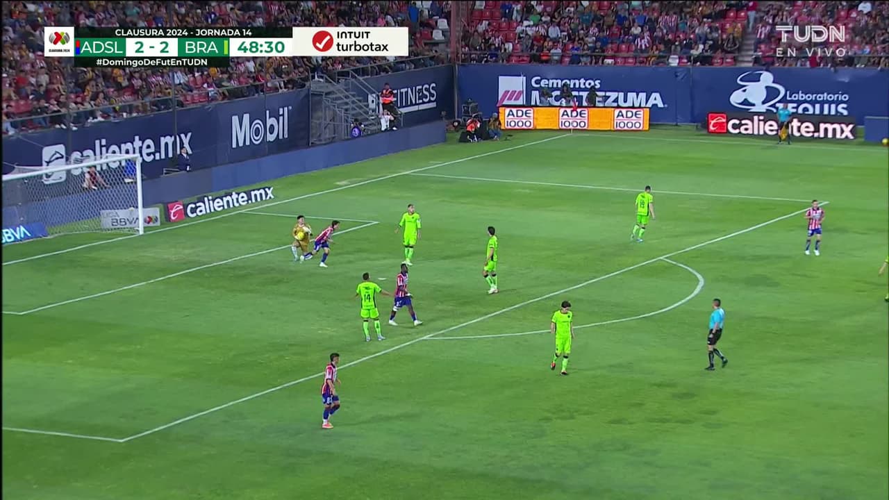 Tiro atajado raso al centro del arco. David Rodríguez (Atlético San Luis) Disparo con la derecha desde fuera del área. Asistencia de Sébastien Salles-Lamonge.