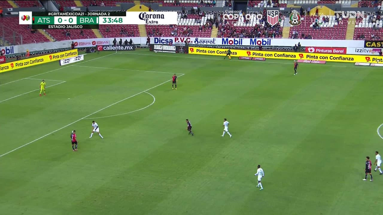Tiro atajado. Diego Barbosa (Atlas) Disparo con la derecha desde fuera del área.