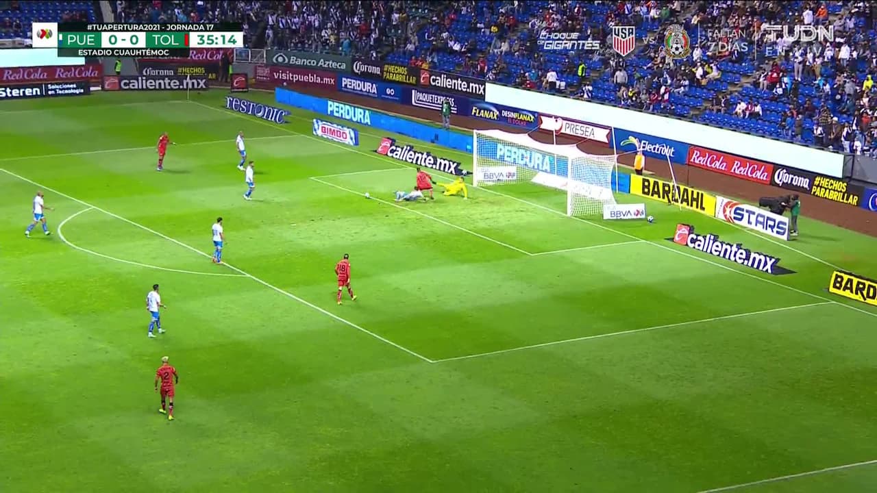 Tiro atajado raso al centro del arco. Diego Chávez (Toluca) zurdazo desde el lado izquierdo dentro del área. Asistencia de Ian González.