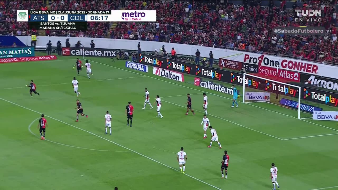Tiro atajado raso al centro del arco. Diego González (Atlas) zurdazo desde el centro del área. Asistencia de Jeremy Márquez con un centro al área.