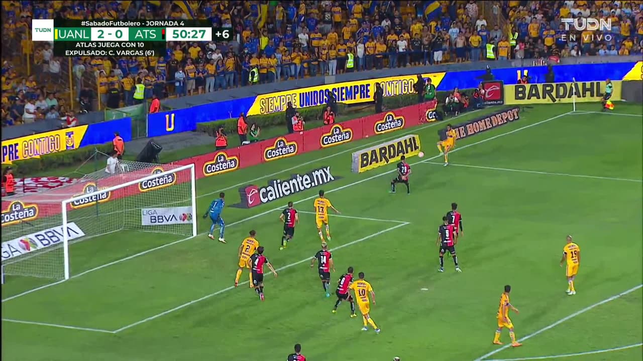 Tiro atajado raso al centro del arco. Diego Reyes (Tigres) Disparo con la derecha desde el centro del área. Asistencia de Juan Vigón con un centro al área.