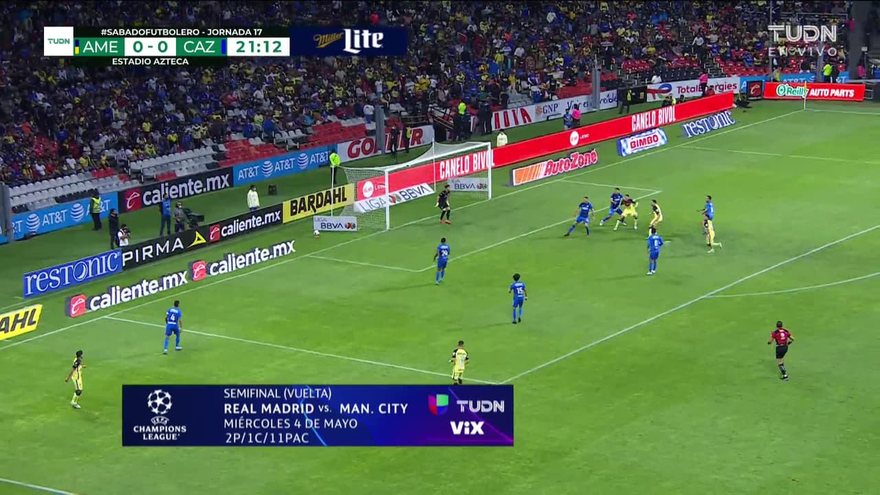 Tiro atajado. Diego Valdés (América) disparo de cabeza desde el centro del área.