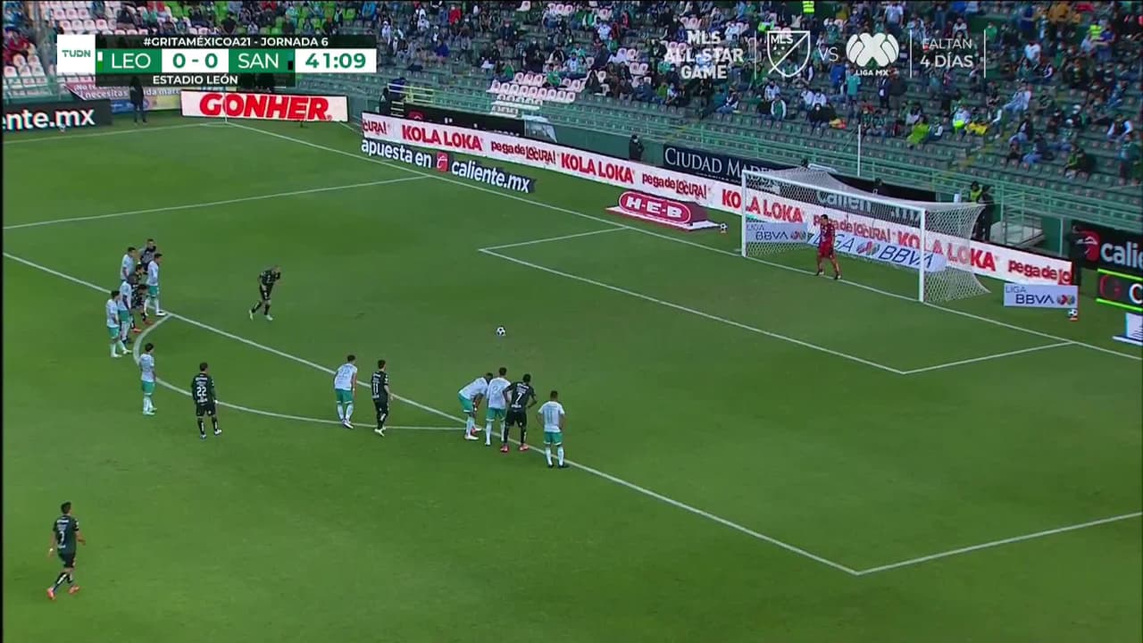 Tiro atajado. Diego Valdés (Santos Laguna) Disparo con la derecha desde el centro del área.