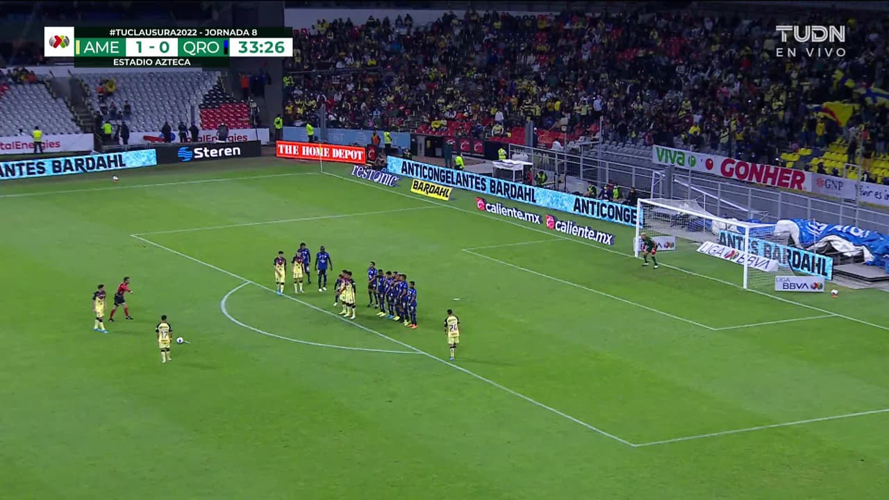 Tiro atajado al ángulo superior derecho. Diego Valdés (América) Disparo con la derecha desde fuera del área.