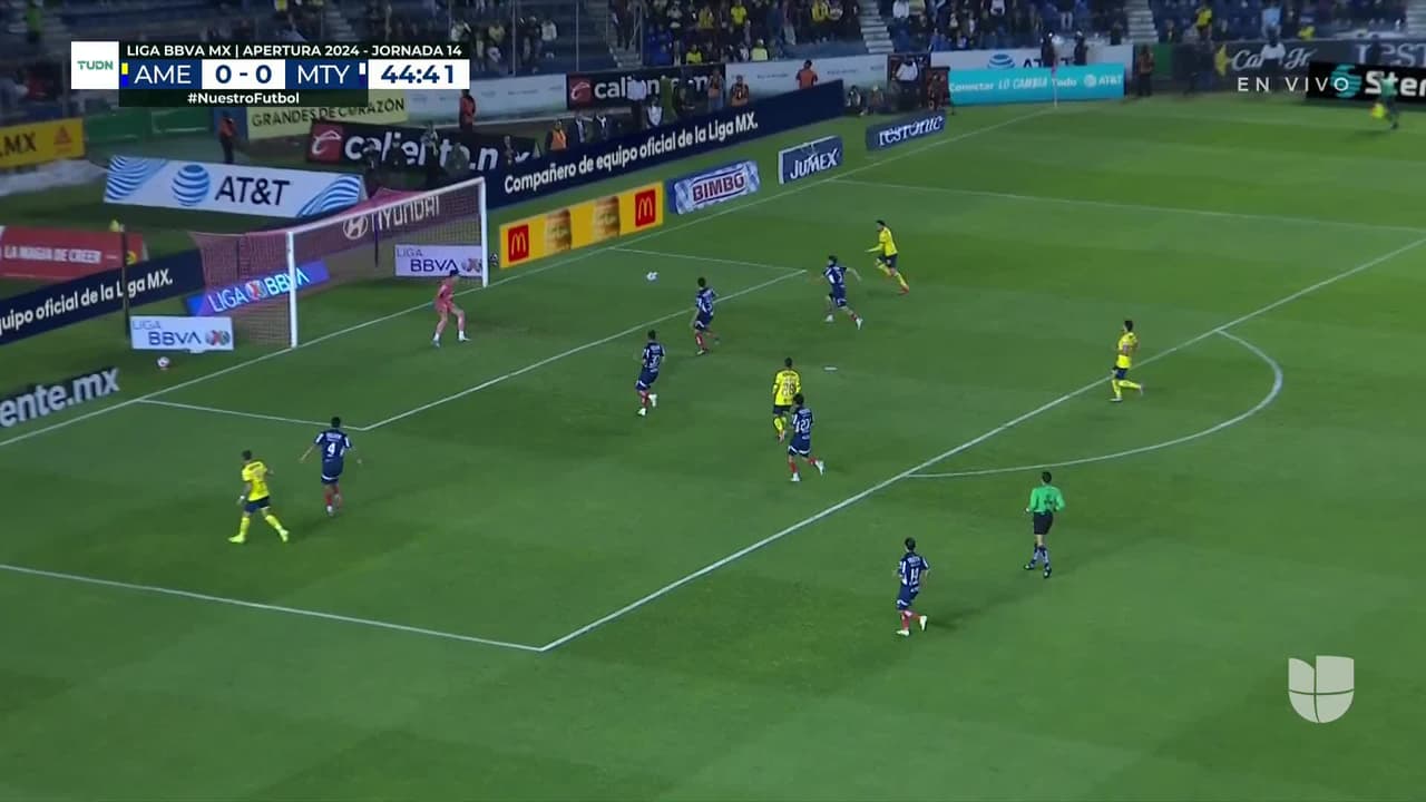 Tiro atajado raso al centro del arco. Diego Valdés (América) Disparo con la derecha a quemarropa desde el lado derecho. Asistencia de Brian Rodríguez con un centro al área.