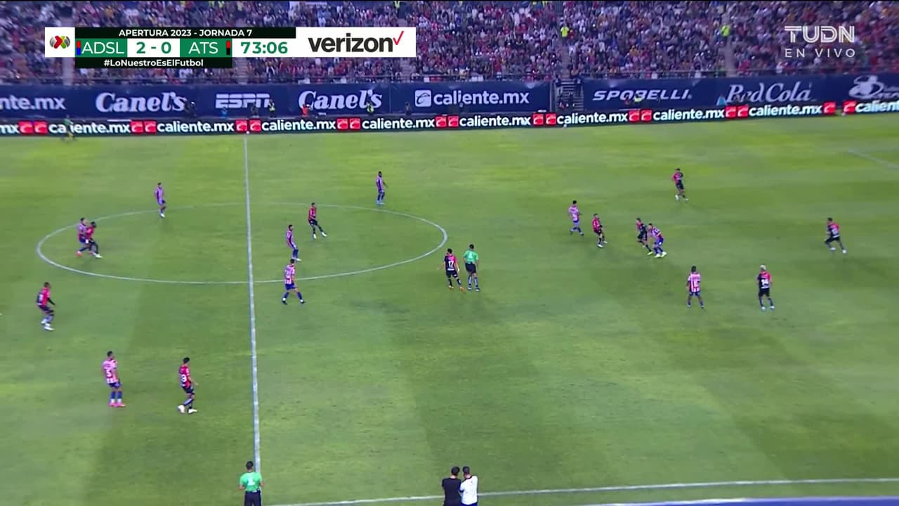 Tiro atajado raso al centro del arco. Dieter Villalpando (Atlético San Luis) Disparo con la derecha desde fuera del área. Asistencia de Léo Bonatini.