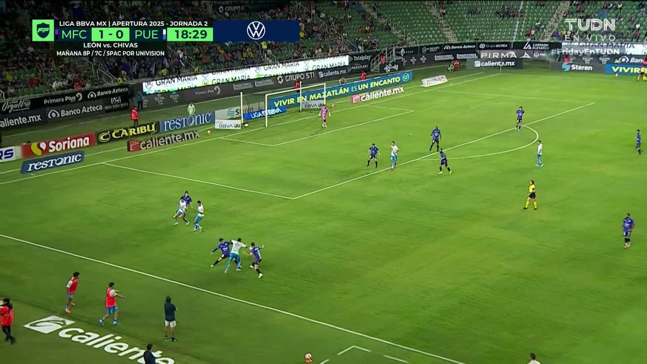 Tiro atajado. Edgar Guerra (Puebla) Disparo con la derecha desde fuera del área.