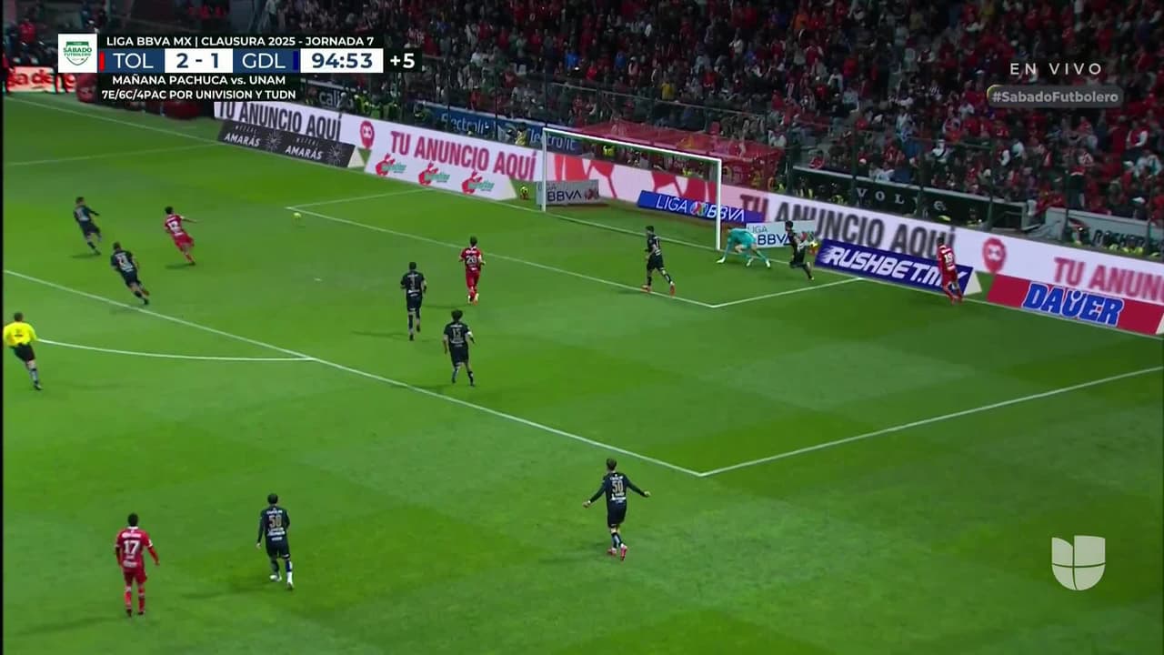 Tiro atajado por abajo a la izquierda. Édgar López (Toluca) Disparo con la derecha sin ángulo desde la derecha.