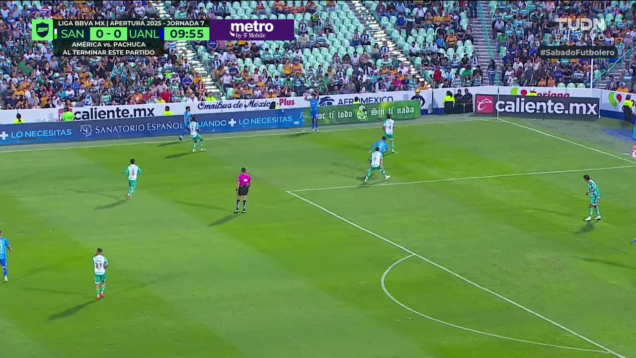 Tiro atajado raso al centro del arco. Édgar López (Tigres) zurdazo desde el lado derecho dentro del área. Asistencia de Javier Aquino pase largo.