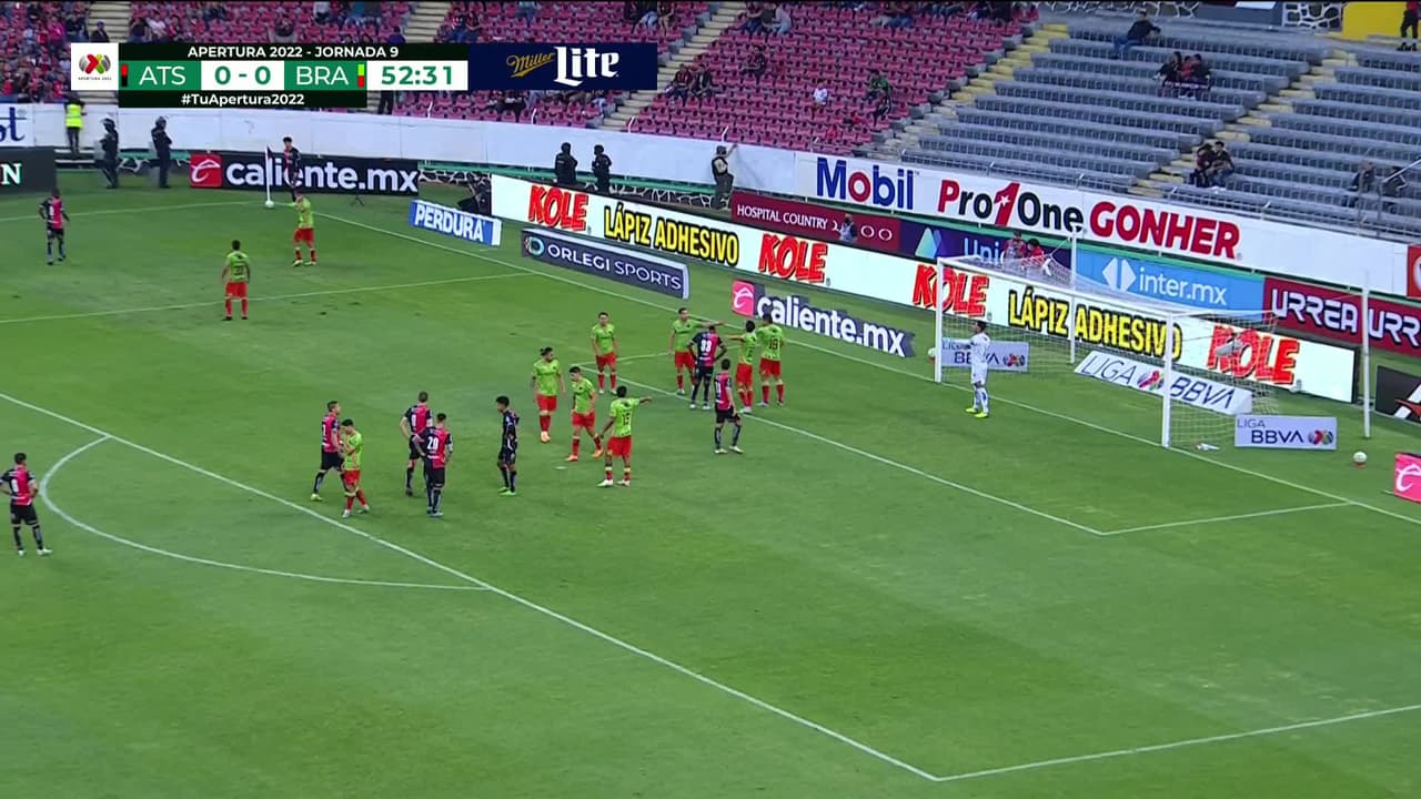 Tiro atajado al ángulo superior derecho. Édgar Zaldívar (Atlas) zurdazo desde fuera del área.