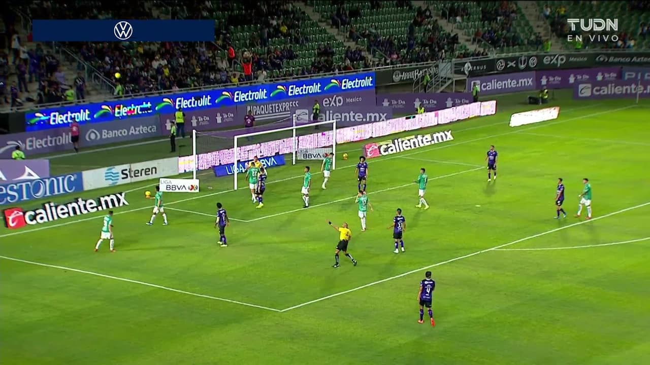 Tiro atajado al ángulo superior derecho. Eduard Bello (Mazatlán FC) disparo de cabeza desde el centro del área. Asistencia de Andrés Montaño con un centro al área.