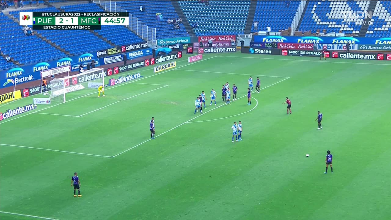 Tiro atajado por abajo a la izquierda. Eduard Bello (Mazatlán FC) Disparo con la derecha desde fuera del área.