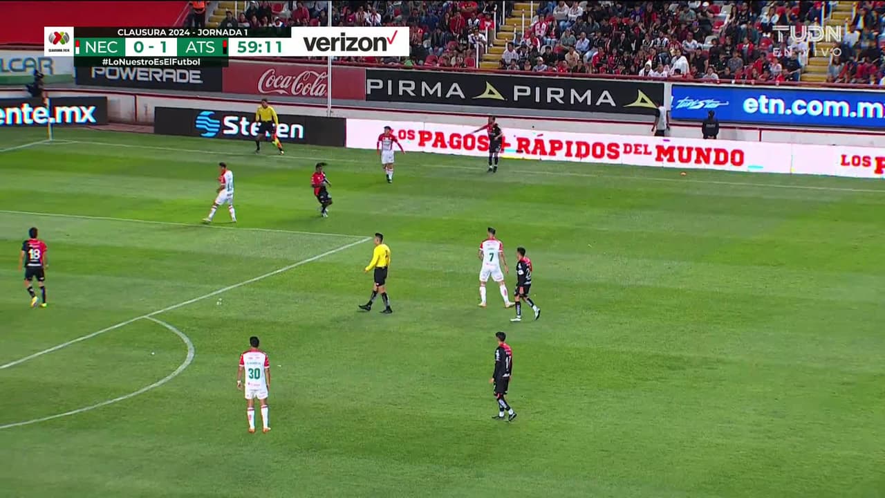 Tiro atajado raso al centro del arco. Eduardo Aguirre (Atlas) Disparo con la derecha desde el centro del área.