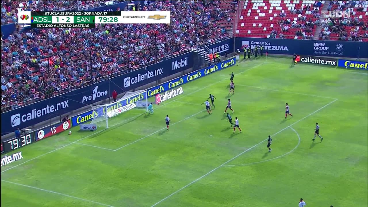 Tiro atajado raso al centro del arco. Eduardo Aguirre (Santos Laguna) Disparo con la derecha sin ángulo desde la derecha. Asistencia de Fernando Gorriarán.