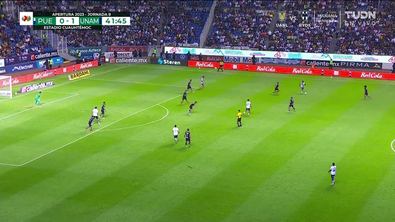 Tiro atajado por abajo a la izquierda. Eduardo Salvio (Pumas UNAM) zurdazo desde fuera del área. Asistencia de Christian Tabó.