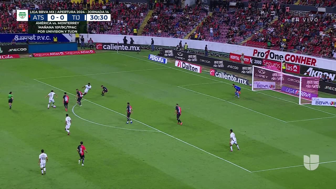 Tiro atajado. Efraín Álvarez (Club Tijuana) zurdazo desde el lado derecho dentro del área.