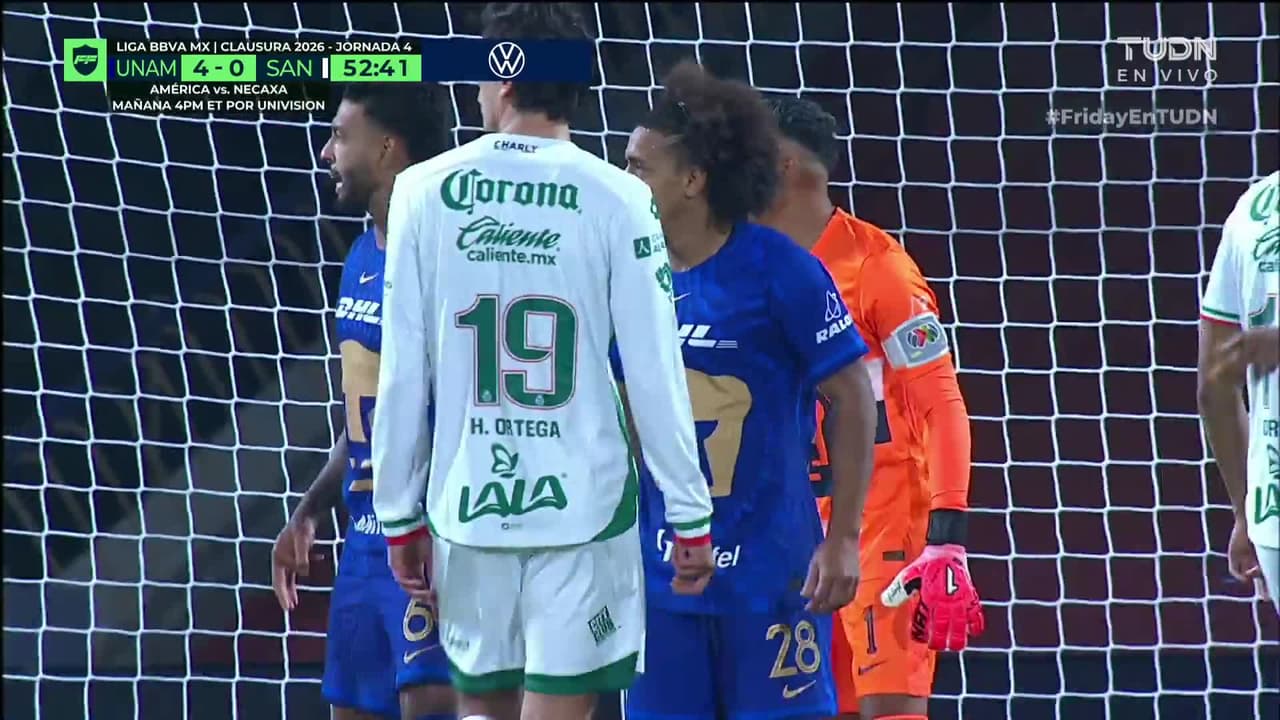 Tiro atajado. Efraín Orona (Santos Laguna) zurdazo desde el centro del área.