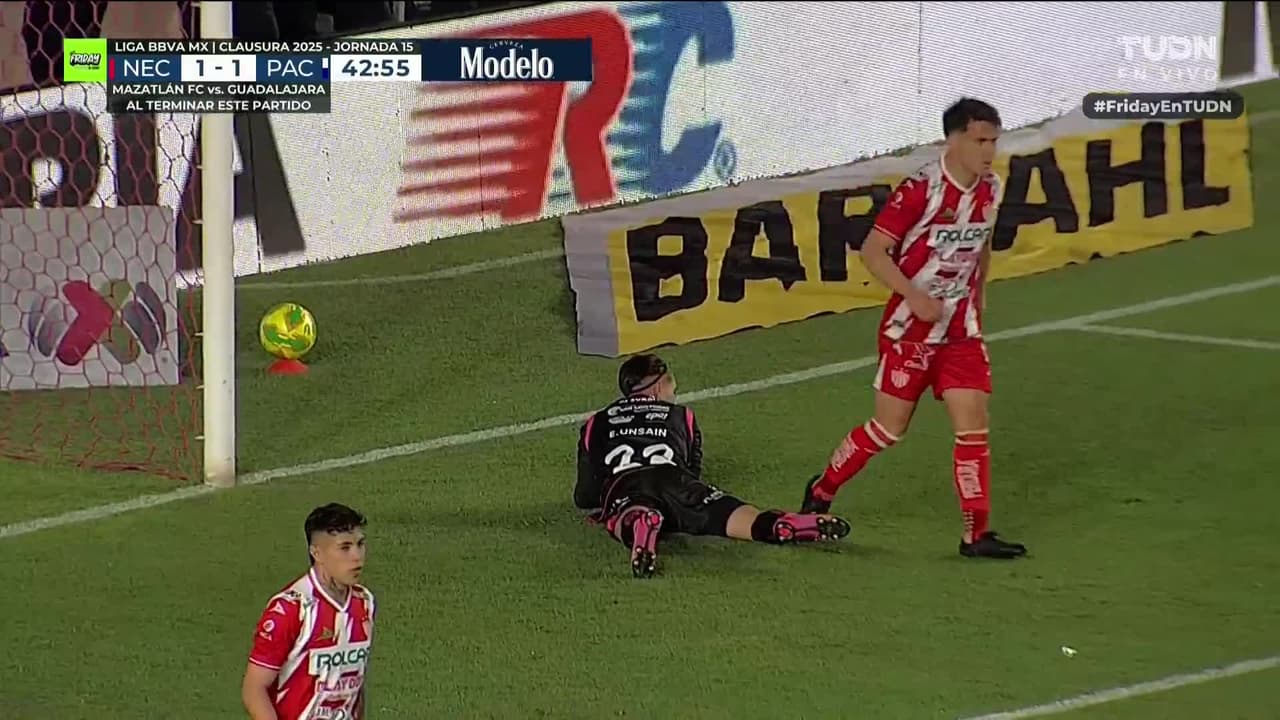 Tiro atajado. Elías Montiel (Pachuca) Disparo con la derecha desde fuera del área.
