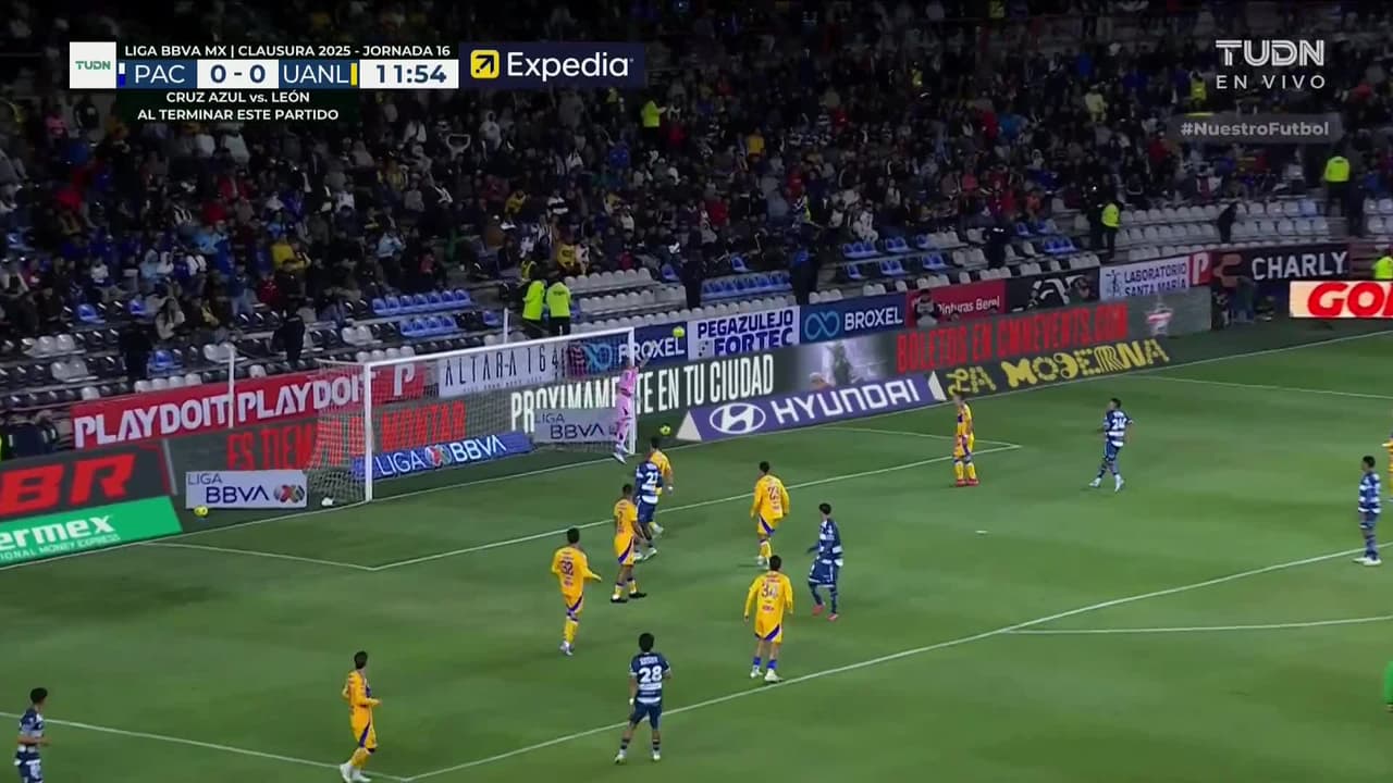 Tiro atajado al ángulo superior derecho. Elías Montiel (Pachuca) Disparo con la derecha desde fuera del área. Asistencia de Alexéi Domínguez.