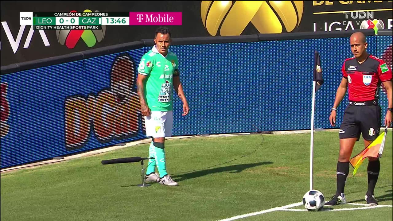 Tiro atajado Por arriba en el centro del arco. Emanuel Gigliotti (León) Disparo con la derecha desde el lado derecho dentro del área. Asistencia de Ángel Mena.