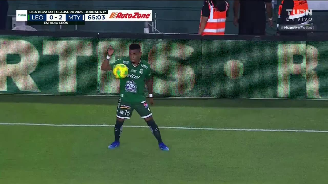 Tiro atajado. Emiliano Rigoni (León) zurdazo desde el centro del área.