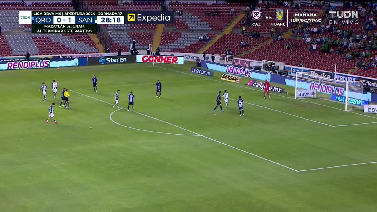 Tiro atajado por abajo a la izquierda. Emmanuel Echeverría (Santos Laguna) zurdazo desde fuera del área. Asistencia de Jordán Carrillo.