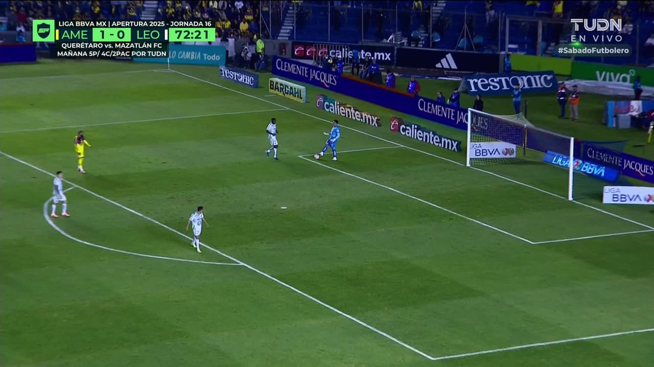 Tiro atajado. Érick Sánchez (América) Disparo con la derecha desde fuera del área.