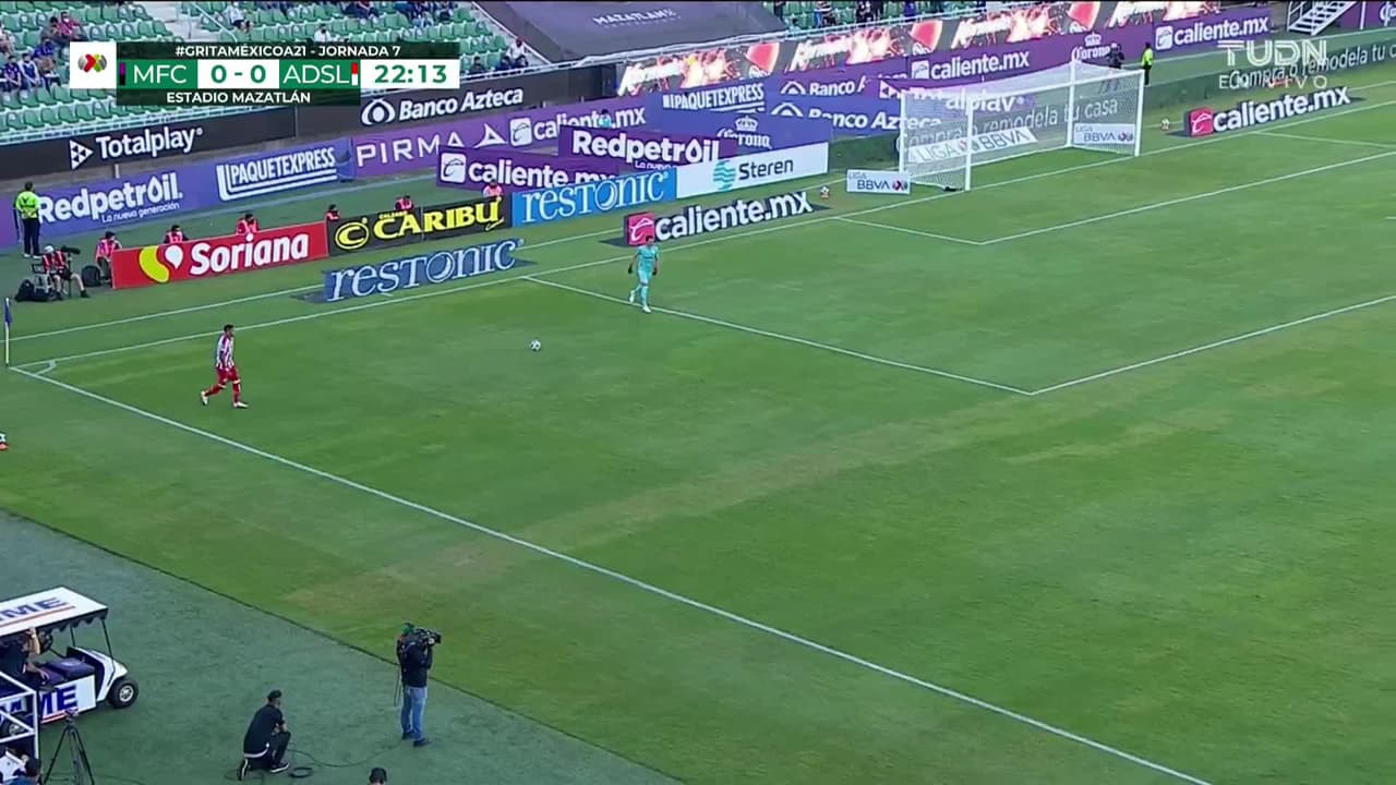 Remate parado a la escuadra izquierda. Facundo Waller (Atlético San Luis) remate con la izquierda desde fuera del área. Asistencia de Javier Güémez.