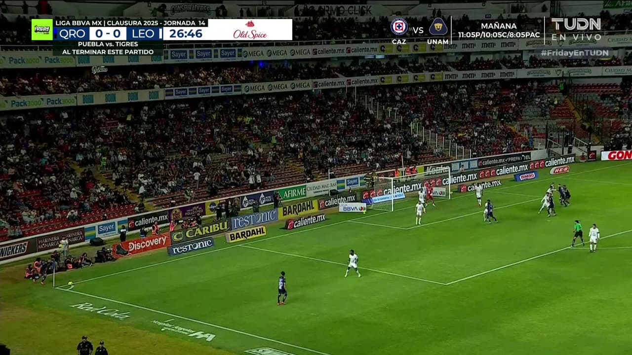 Tiro atajado al ángulo superior derecho. Federico Lértora (Querétaro) disparo de cabeza desde el centro del área. Asistencia de Lucas Rodríguez con un centro al área.