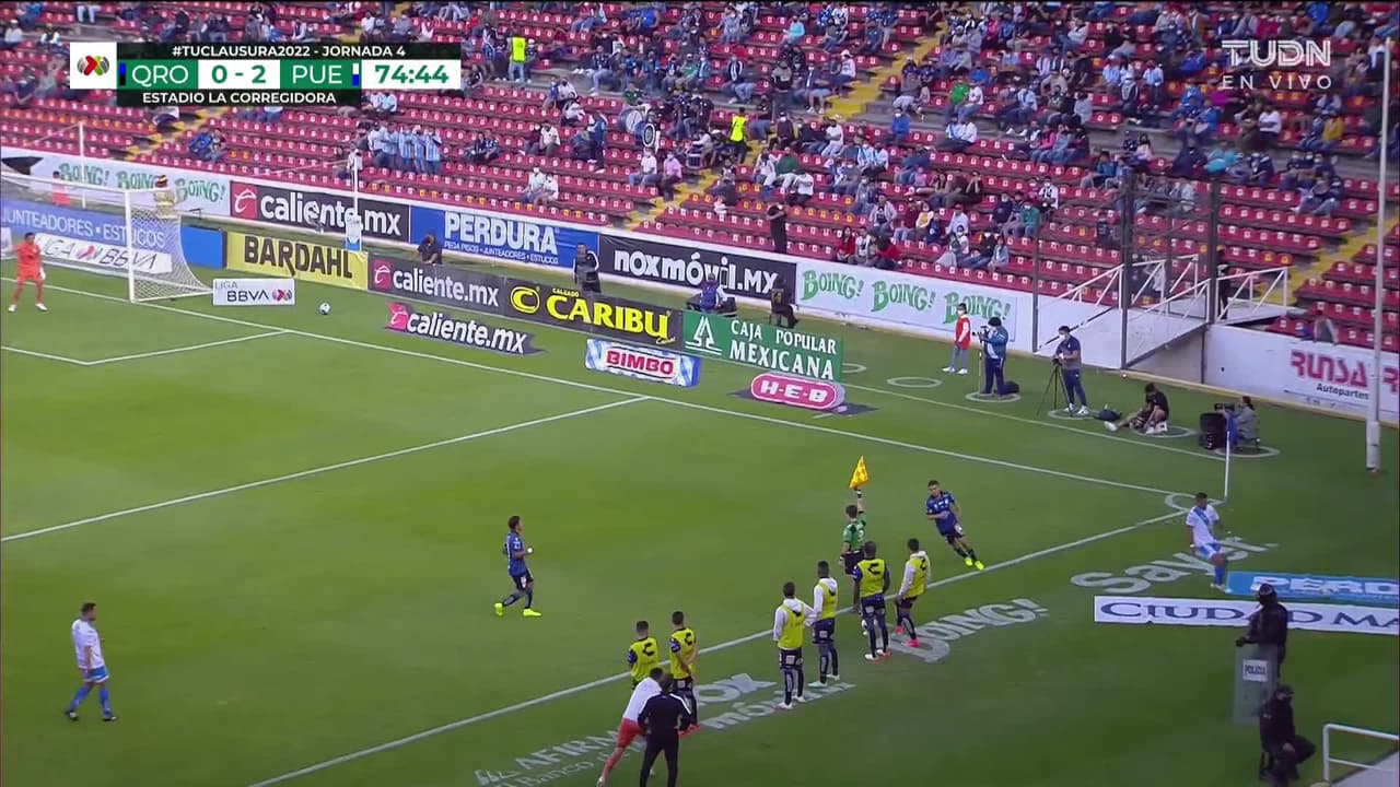 Tiro atajado junto al lado derecho de la portería. Federico Mancuello (Puebla) zurdazo desde más de 30 metros.