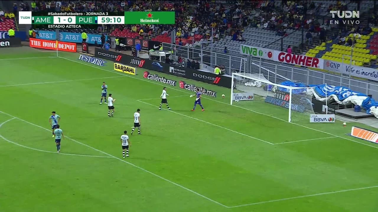 Tiro atajado por abajo a la izquierda. Federico Mancuello (Puebla) zurdazo desde más de 30 metros. Asistencia de Emilio Martínez.