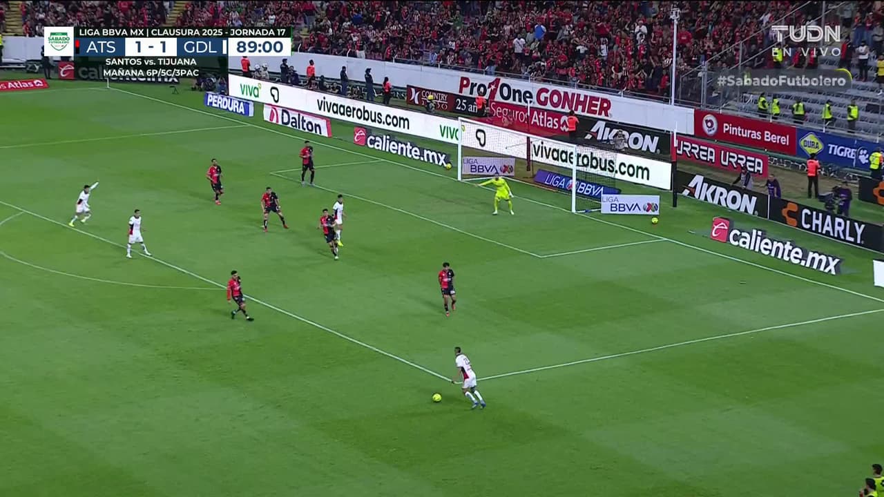 Tiro atajado junto al lado derecho de la portería. Fernando Beltrán (Chivas ) Disparo con la derecha desde fuera del área. Asistencia de Luis Romo.