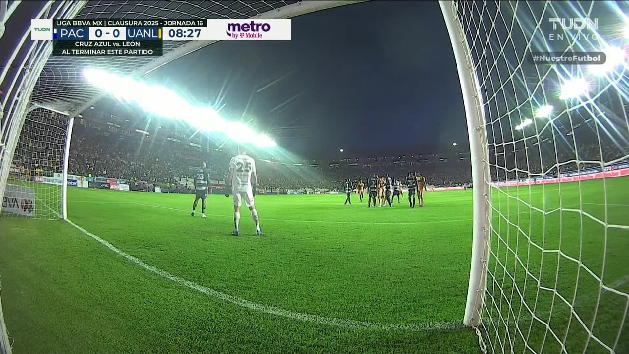 Tiro atajado raso al centro del arco. Fernando Gorriarán (Tigres) zurdazo desde fuera del área.