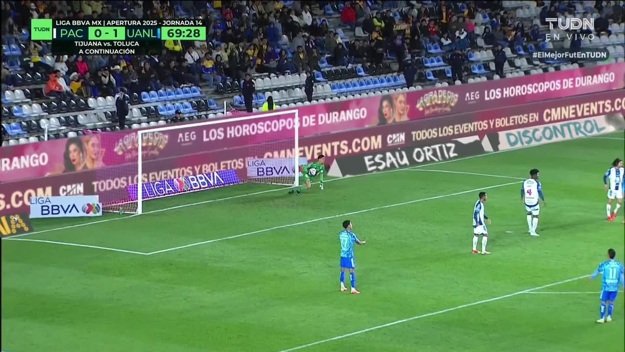 Tiro atajado. Fernando Gorriarán (Tigres) Disparo con la derecha desde fuera del área.
