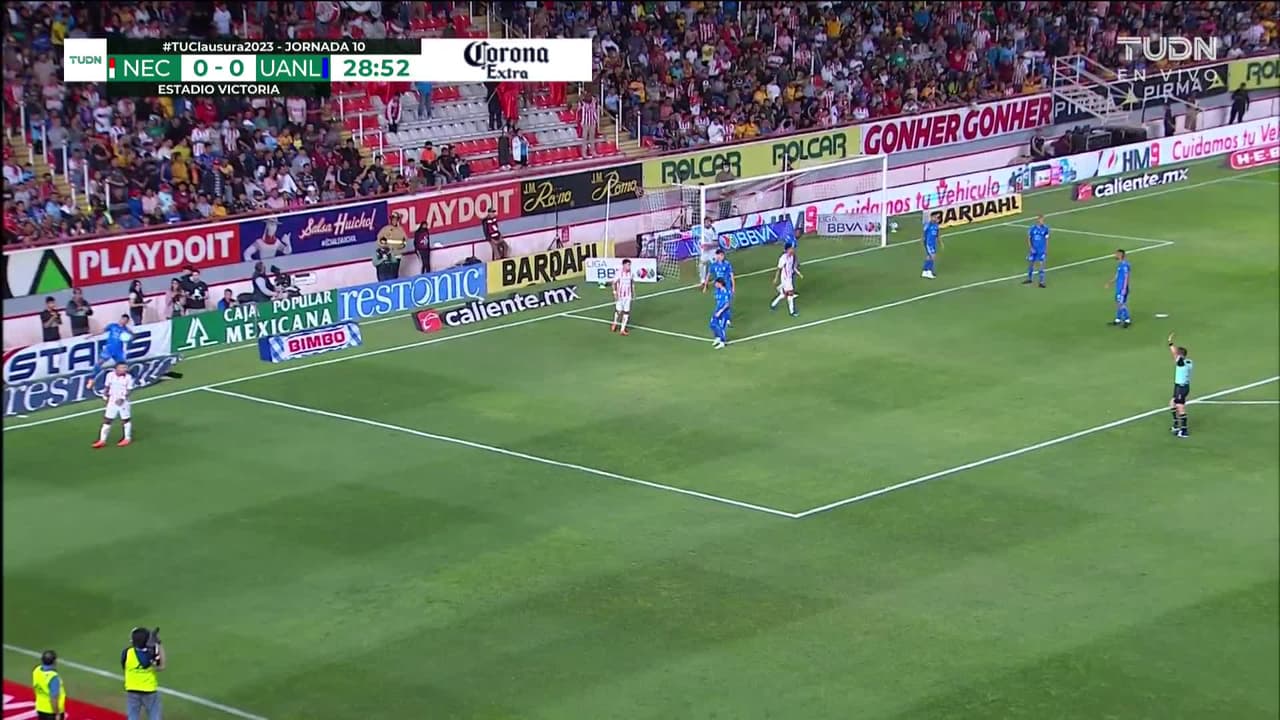 Tiro atajado al ángulo superior derecho. Fernando Madrigal (Necaxa) Disparo con la derecha desde fuera del área.